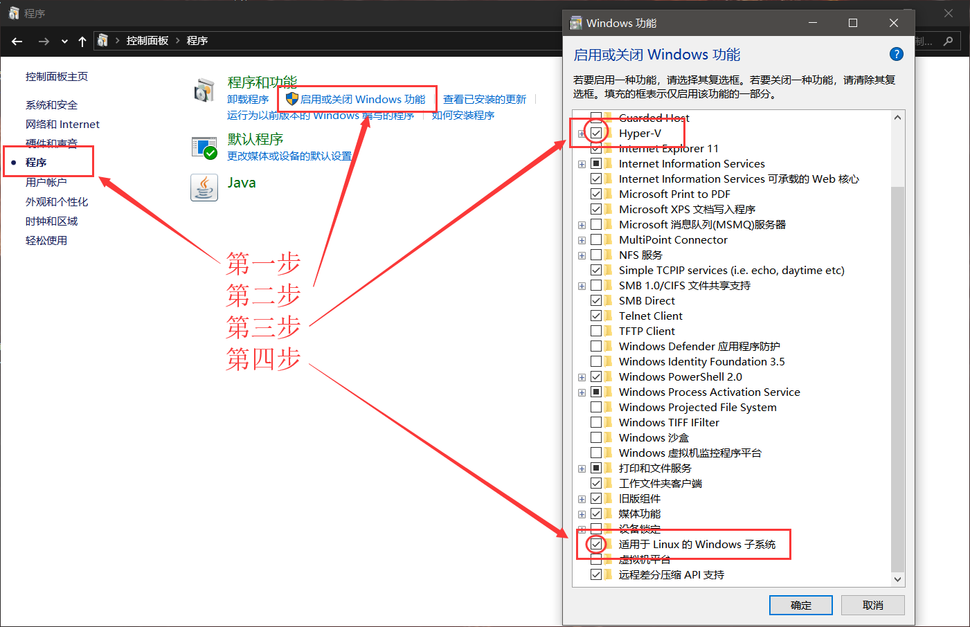 - 启用 Hyper-V 和, 先打开控制面板, 而后如下图操作